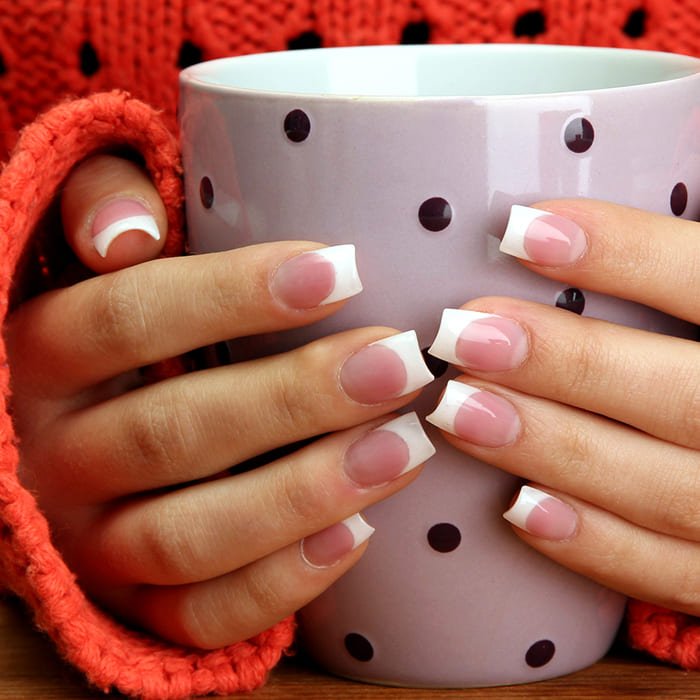 French Gel and Acrylic Extensions with White Tip and Pink Components